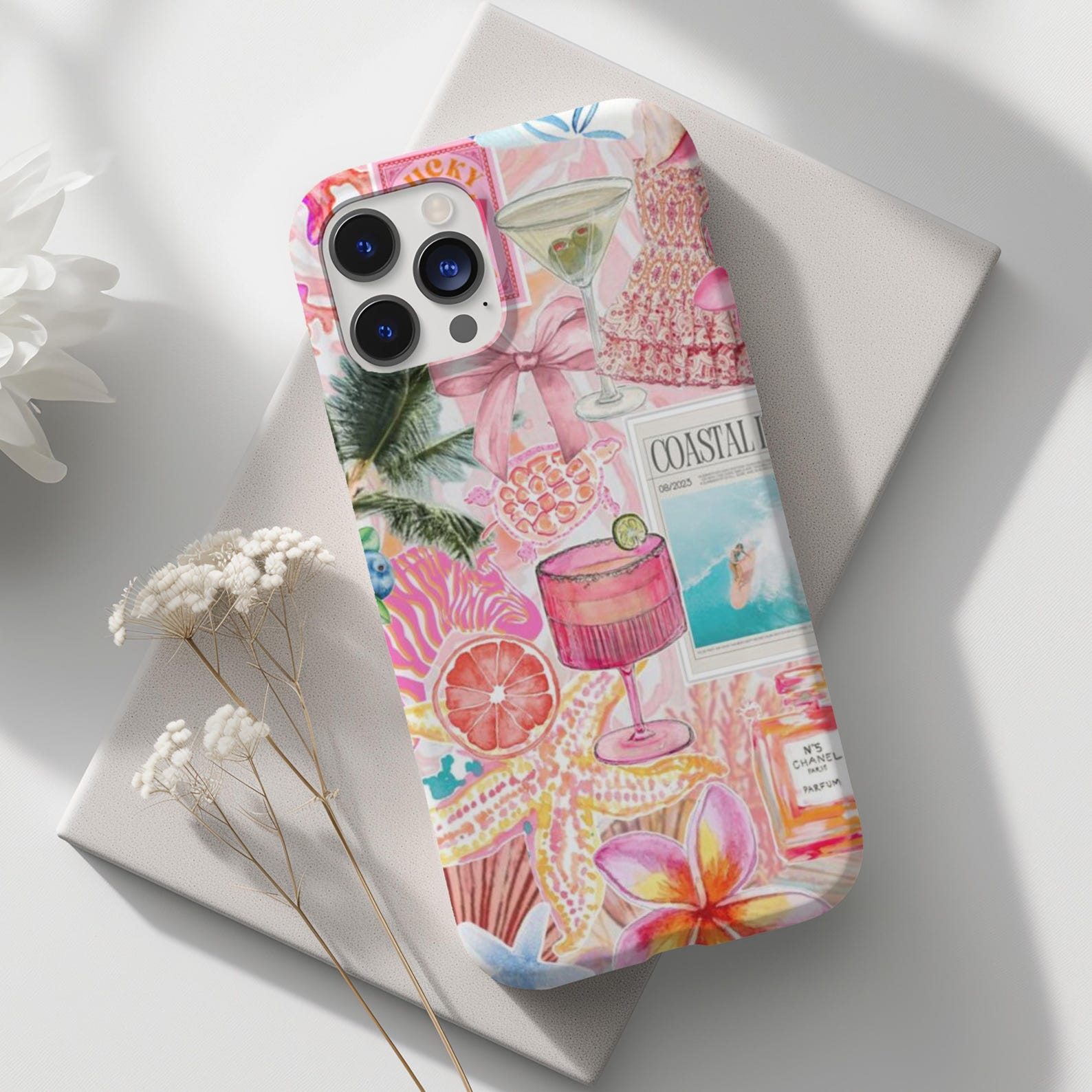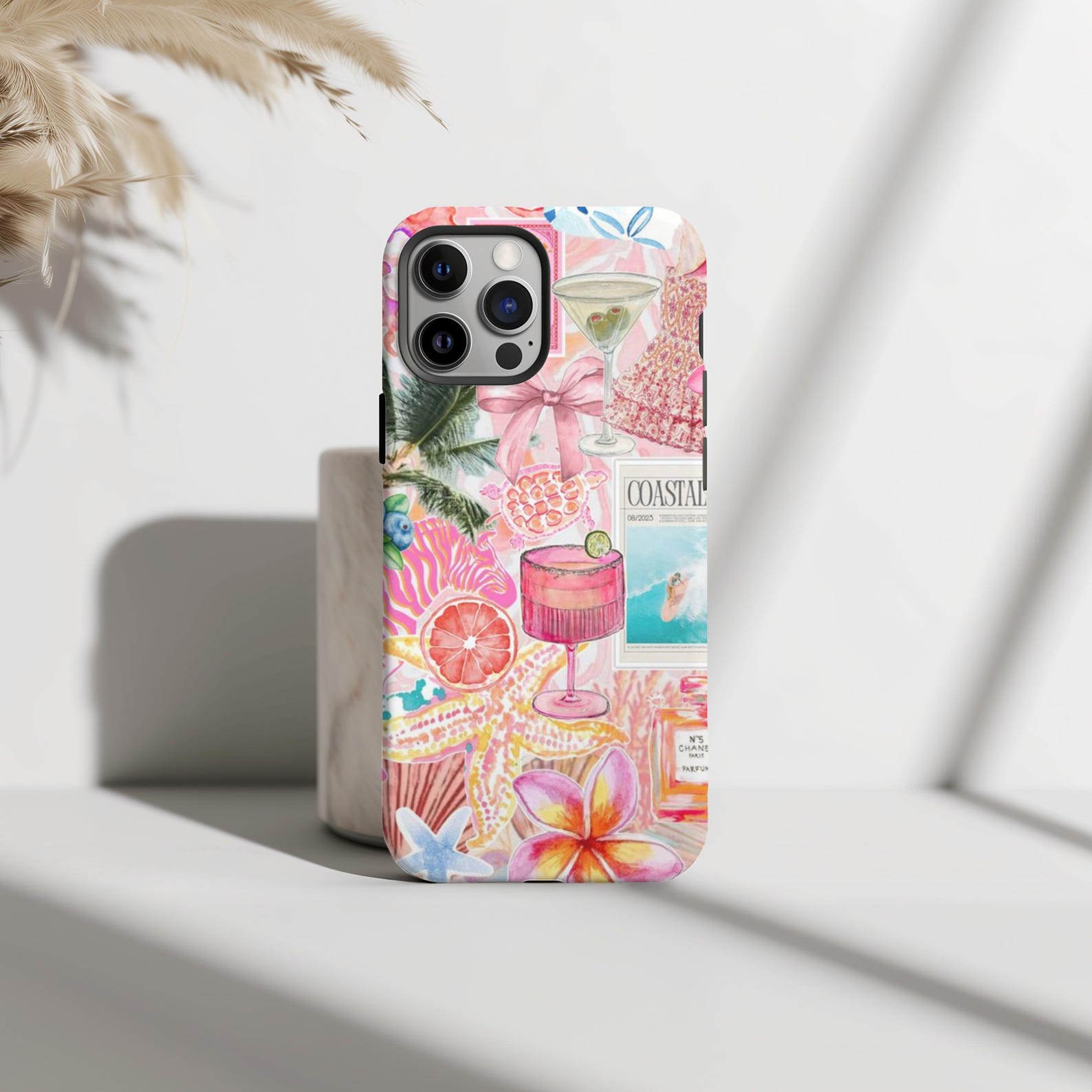 Embrace the essence of summer with this vibrant tropical-themed phone case. Featuring a delightful collage of colorful cocktails, floral elements, and playful patterns, it’s perfect for those who love a fun and lively aesthetic. Made from durable materials, this case offers excellent protection with a glossy finish that enhances its bright design. This stylish case exudes a playful and carefree vibe, making it a standout accessory for any tropical enthusiast.