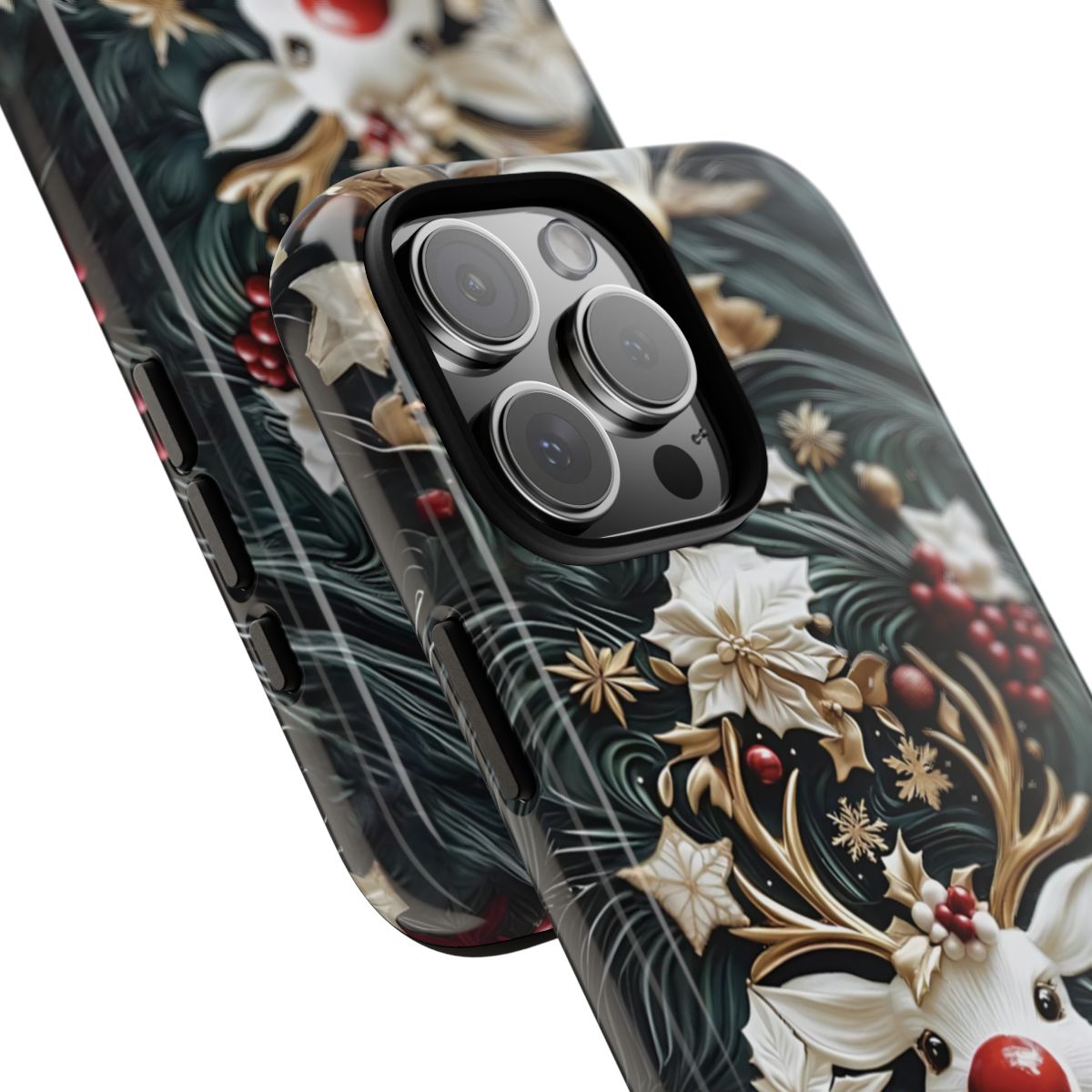 Celebrate the joy of the holiday season with our Festive Rudolph Christmas Phone Case. Adorned with a charming reindeer face and an array of vibrant flowers, holly leaves, and festive accents, this case is designed to bring a smile to your face. Crafted from durable materials, it not only provides excellent protection for your phone but also showcases a delightful blend of whimsy and holiday cheer. Perfect for anyone looking to add a touch of Christmas spirit to their everyday carry, this stylish accessory makes an ideal gift for friends and family alike.