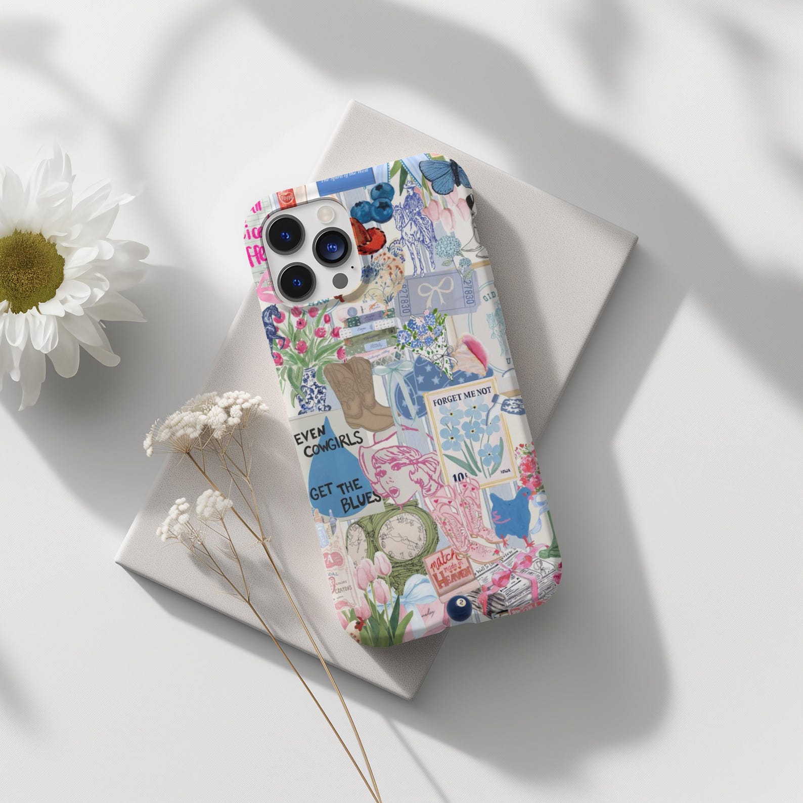Showcase your unique style with this charming phone case featuring a delightful collage of floral and vintage elements. The vibrant colors blend seamlessly to create an eye-catching design that is both playful and artistic. Made with durable materials, this case offers excellent protection while maintaining a smooth, glossy finish. It’s the perfect accessory for anyone looking to add a touch of personality and flair to their phone.