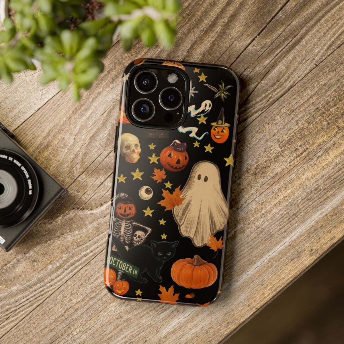 Vintage Halloween Phone Case, Ghosts, Pumpkins, Skeleton Collage