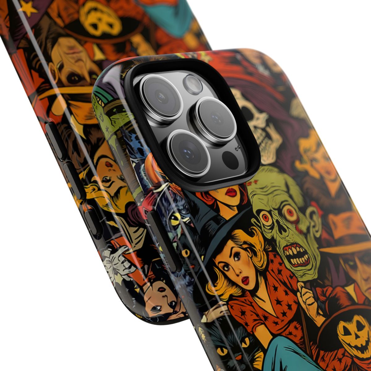 Celebrate the spirit of Halloween with our Spooky Halloween Retro Character Phone Case! This vibrant case showcases an eye-catching design featuring classic Halloween characters like witches, zombies, and black cats in a colorful, retro style. Made from durable materials, it provides superior protection for your phone while ensuring you stand out during the spooky season. Perfect for Halloween enthusiasts, this case makes a great gift for friends or family who love all things frightful and fun!
