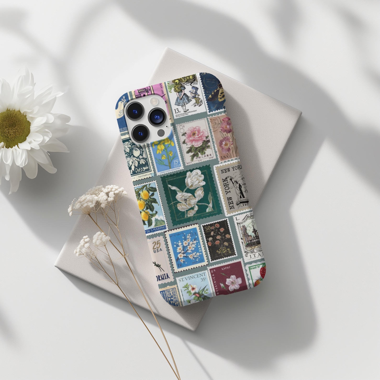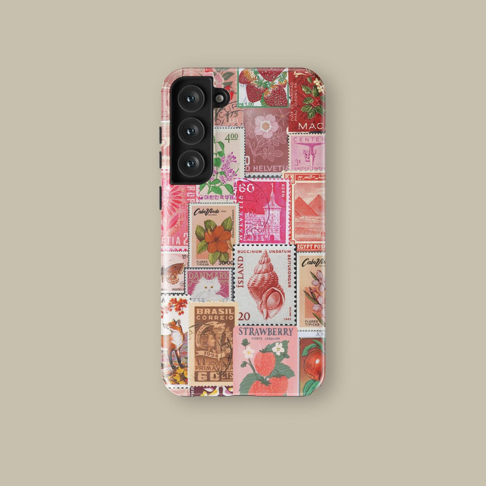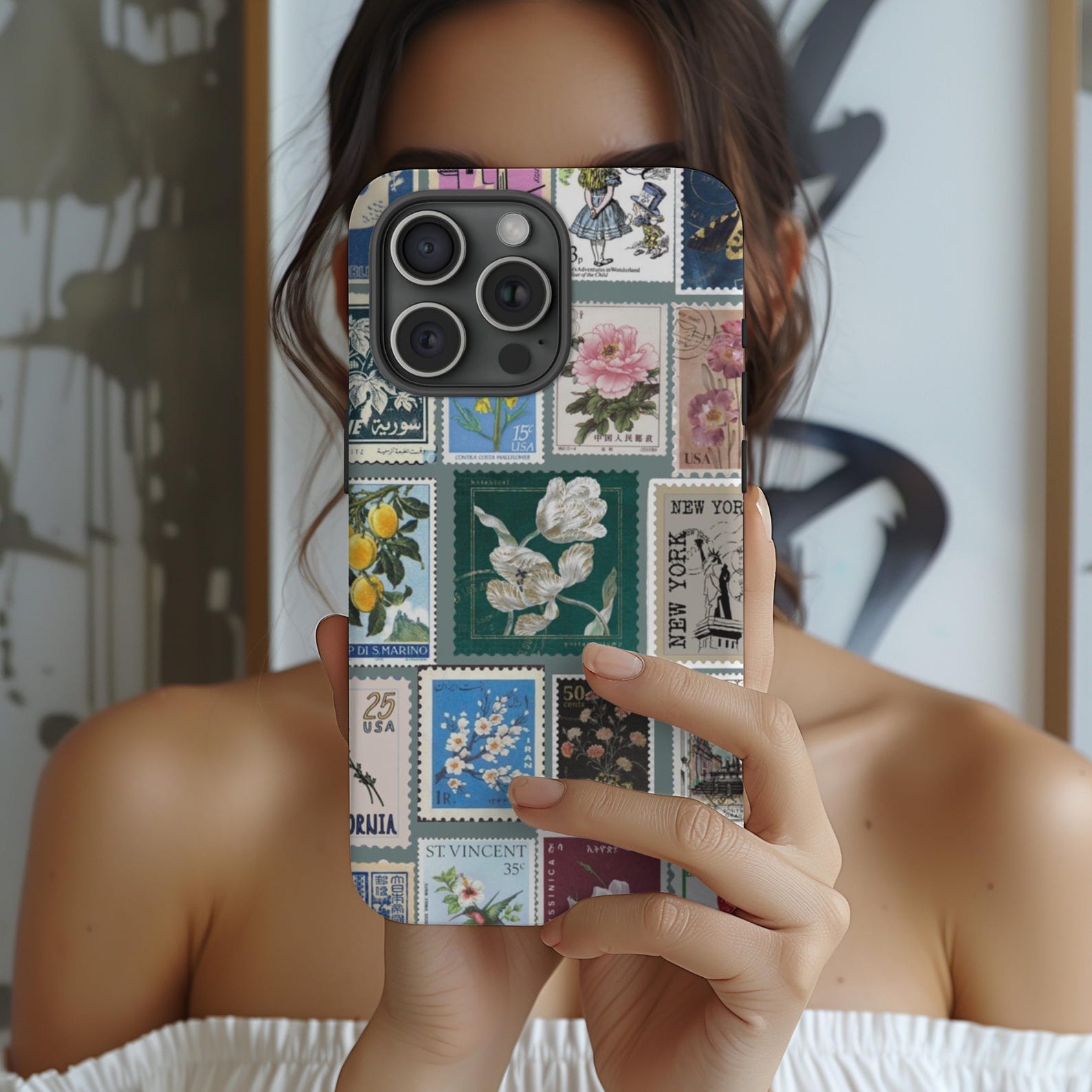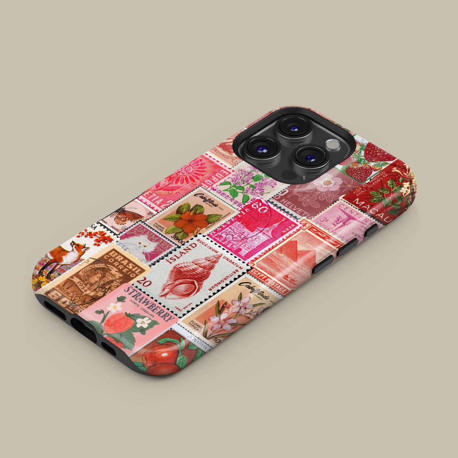 Inspired by a nostalgic design, this tough phone case features a delightful collage of vintage postage stamps. The playful mix of vibrant colors, including pinks, greens, and earthy tones, creates an eye-catching aesthetic. Crafted from durable material, it offers a shockproof texture while ensuring your phone remains safe and stylish. Perfect for those who appreciate unique and retro designs, this case adds a touch of whimsy to everyday life.