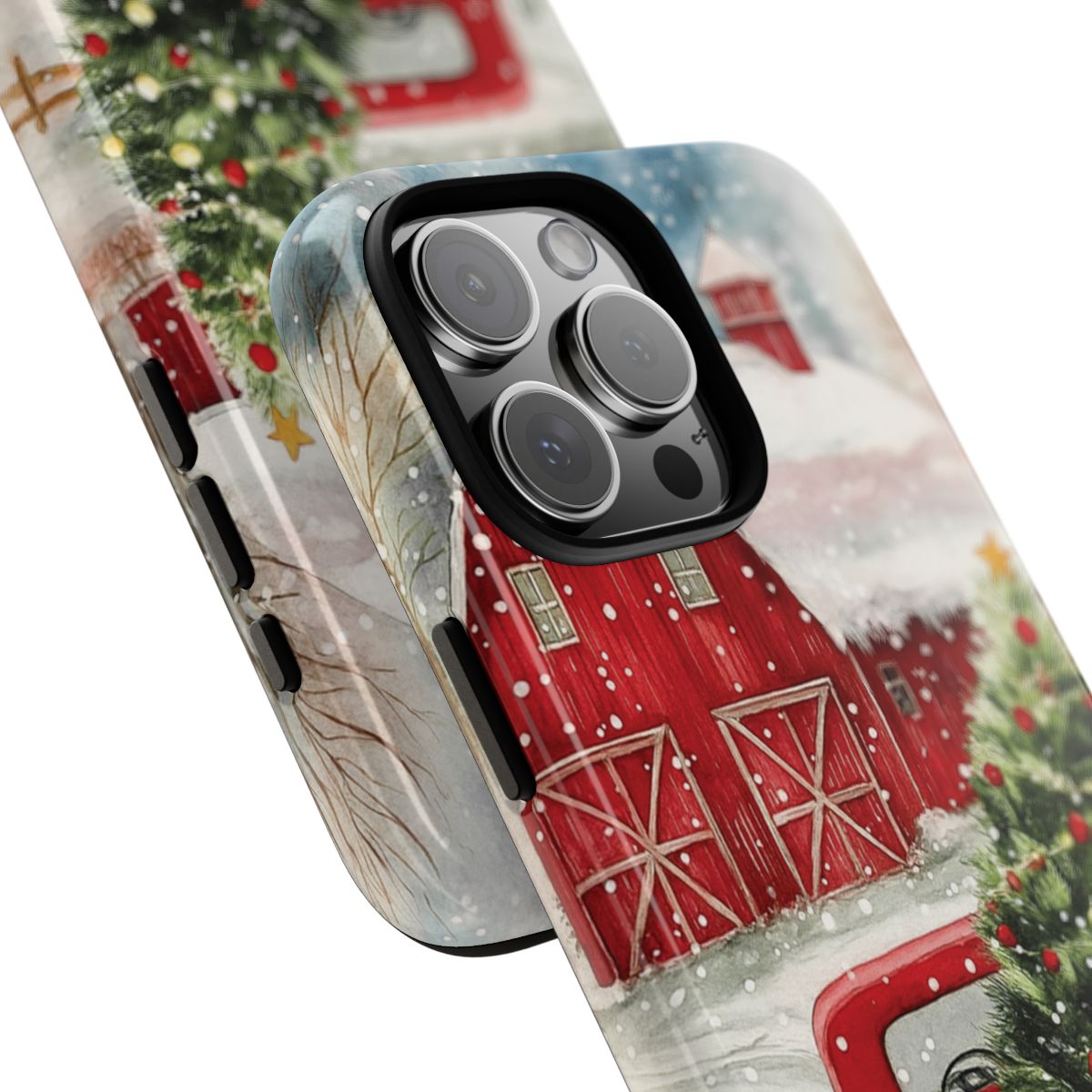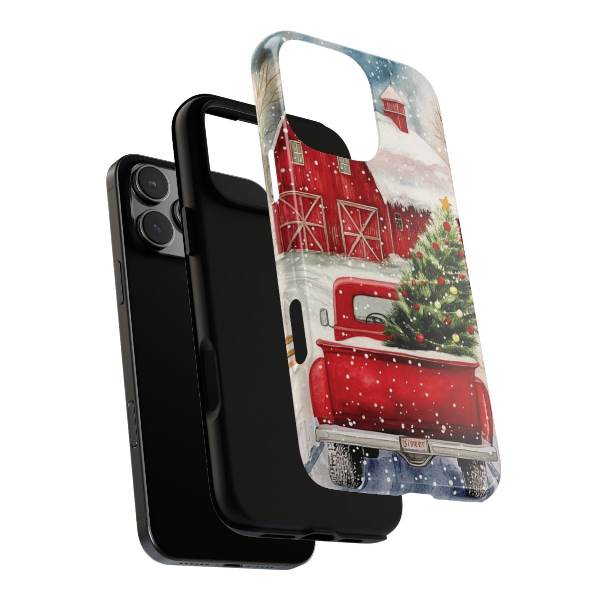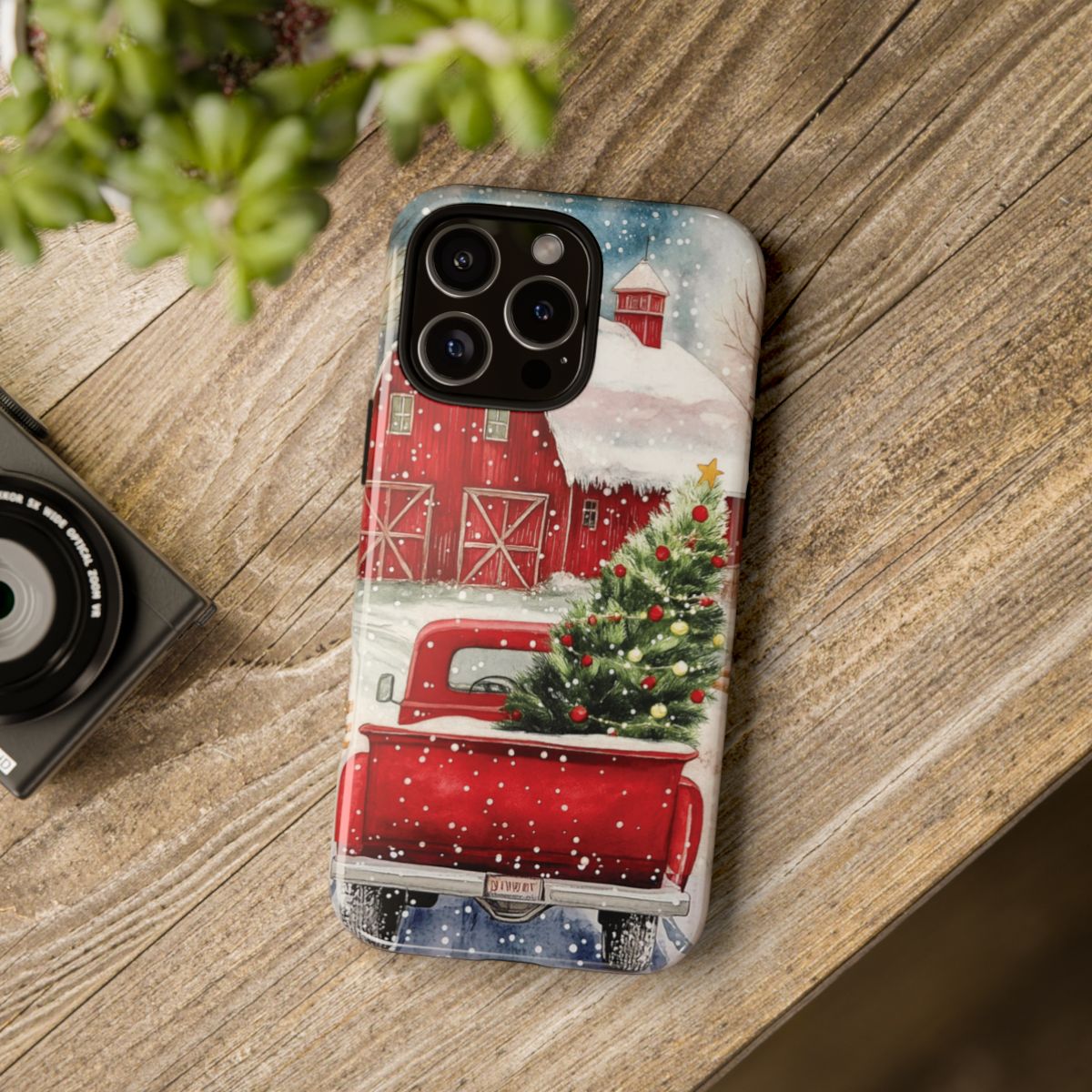 Vintage Red Christmas Truck Phone Case, Winter Farmhouse Barn