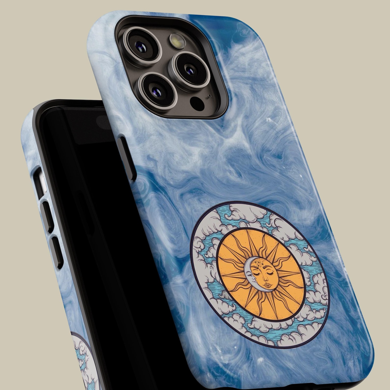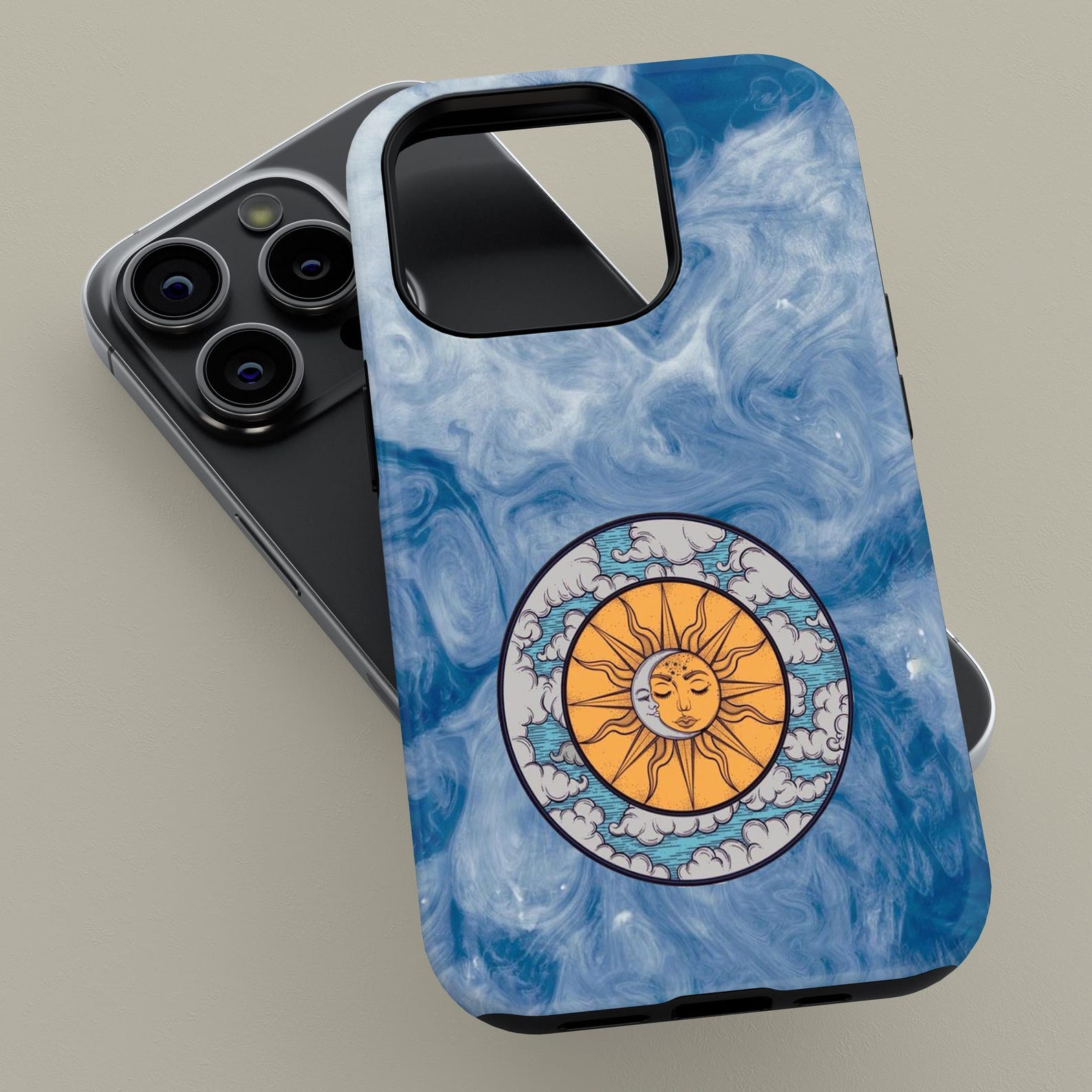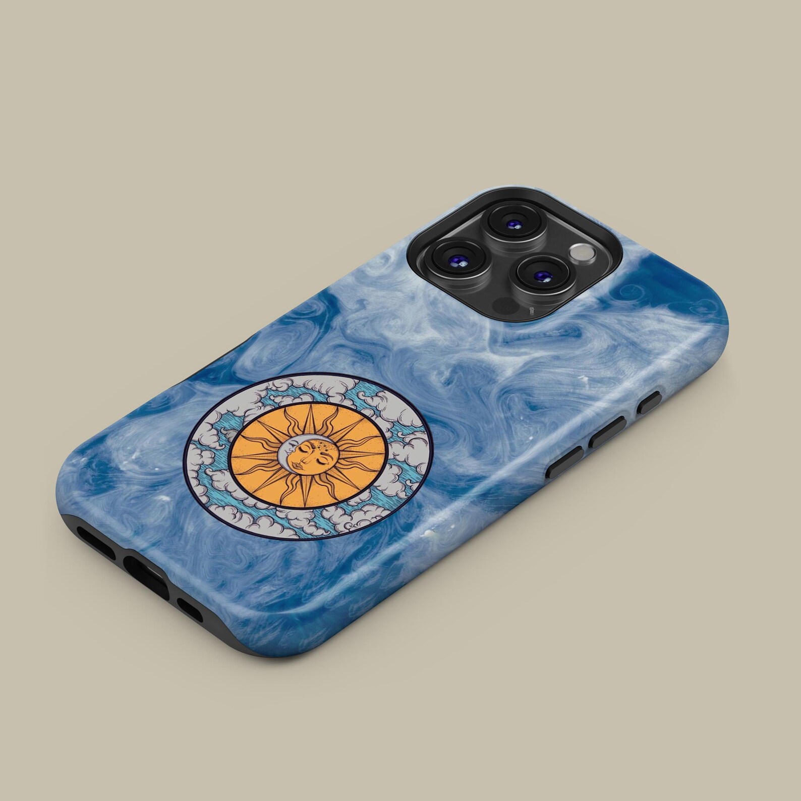 Embrace a dreamy vibe with this whimsical phone case featuring a beautiful sun design. The stunning blue marble pattern creates a tranquil yet energizing aesthetic, making it a perfect accessory for any style. Crafted from durable materials, this case offers a glossy finish that protects against daily wear and tear while enhancing your phone’s look. The playful yet elegant design is sure to catch the eye and elevate your device’s style.