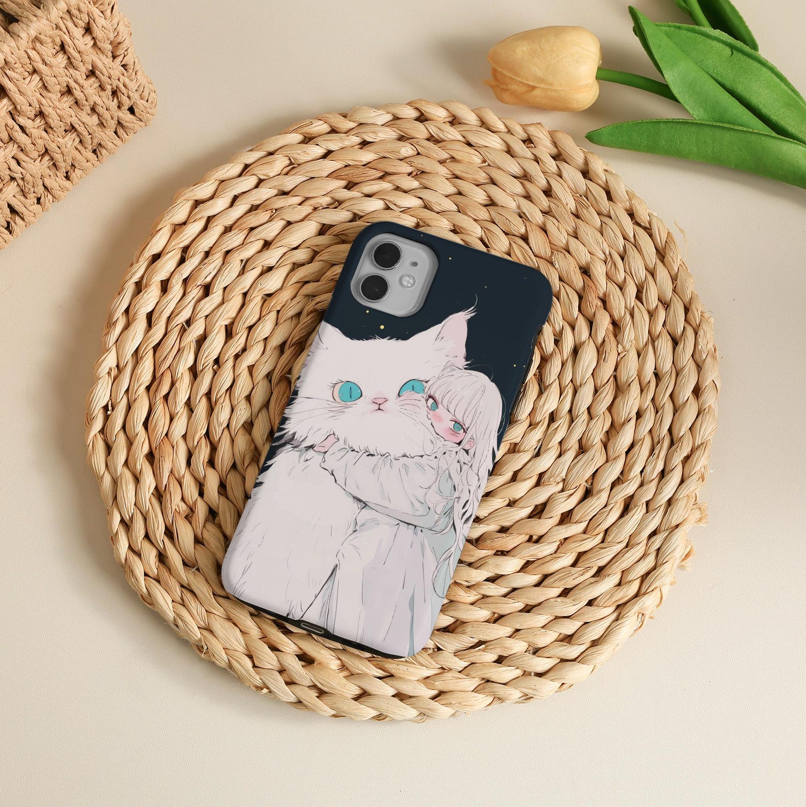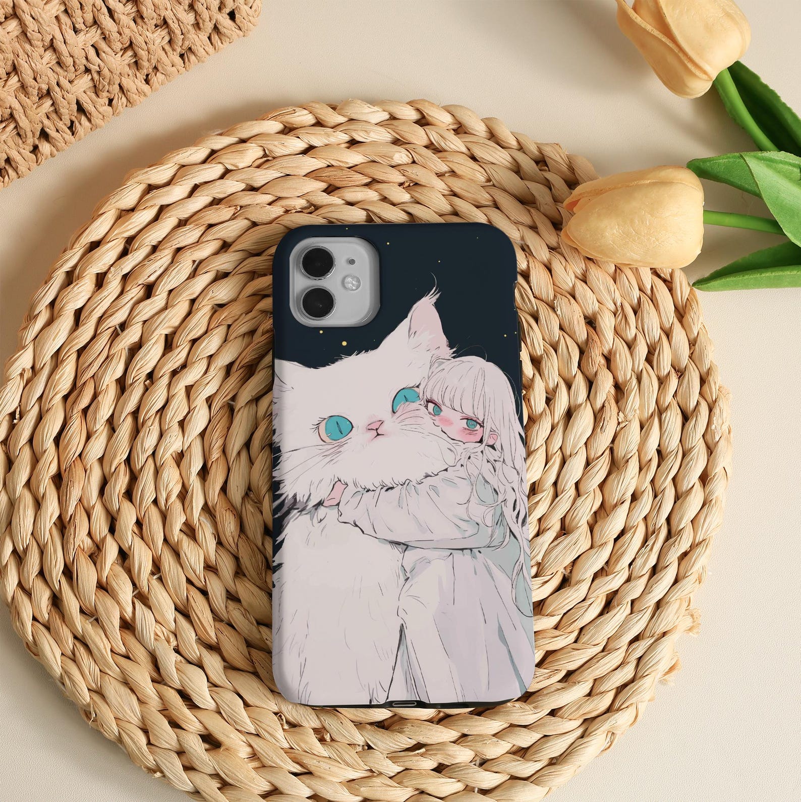 Embrace a playful and charming vibe with this whimsical phone case featuring a cute girl hugging an adorable fluffy cat. The soft pastel colors and enchanting night sky background create a dreamy aesthetic perfect for cat lovers and art enthusiasts alike. Crafted from durable materials, this tough phone case offers excellent protection while maintaining a smooth, matte finish. It’s not just a phone accessory; it’s a delightful expression of your personality.