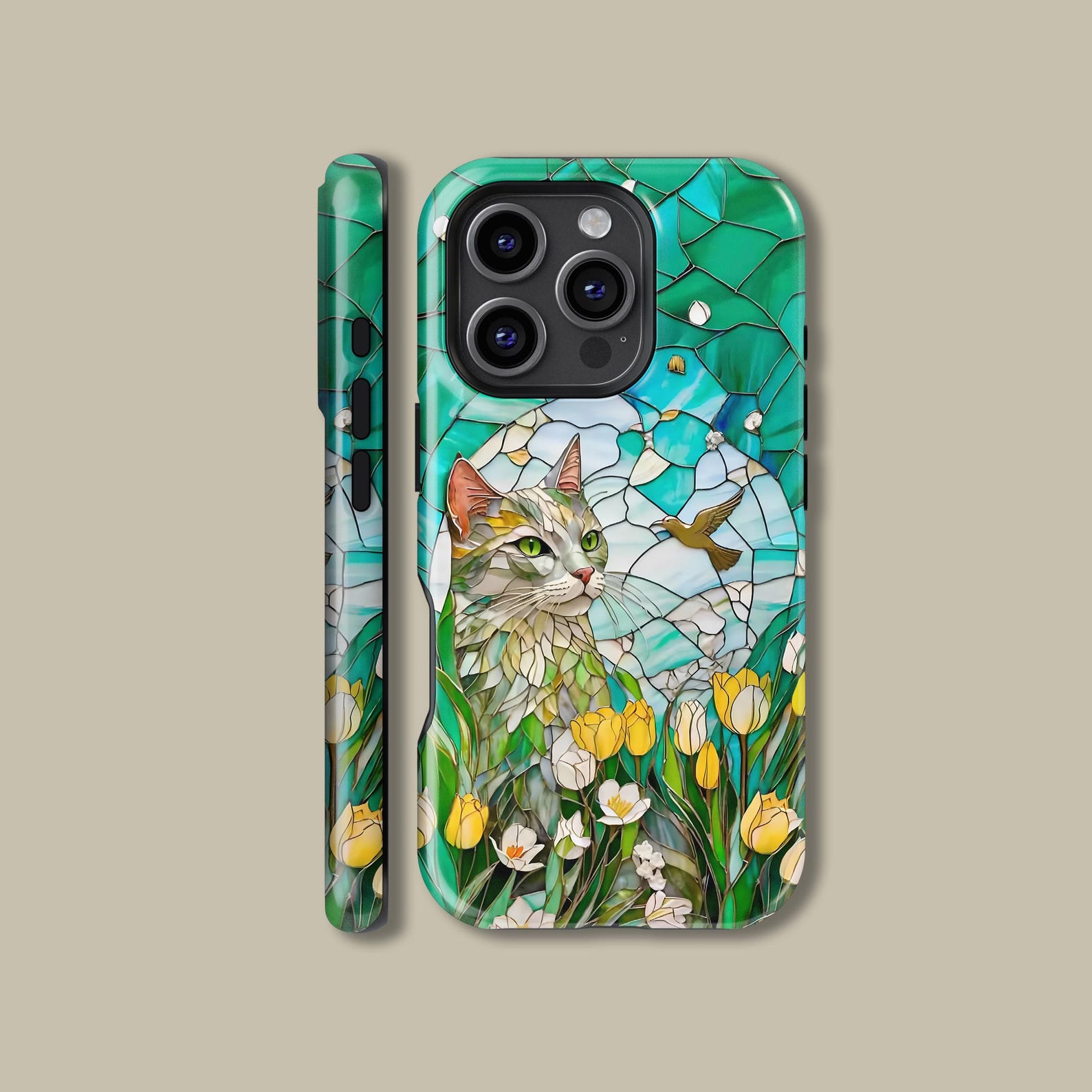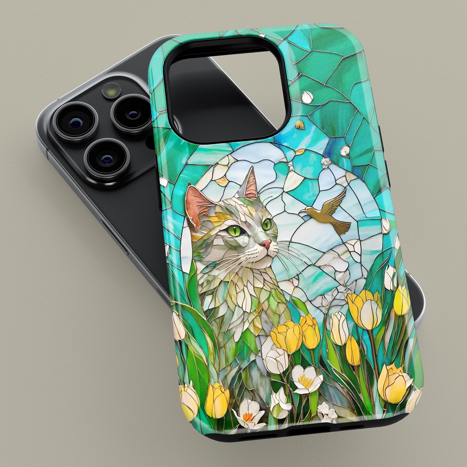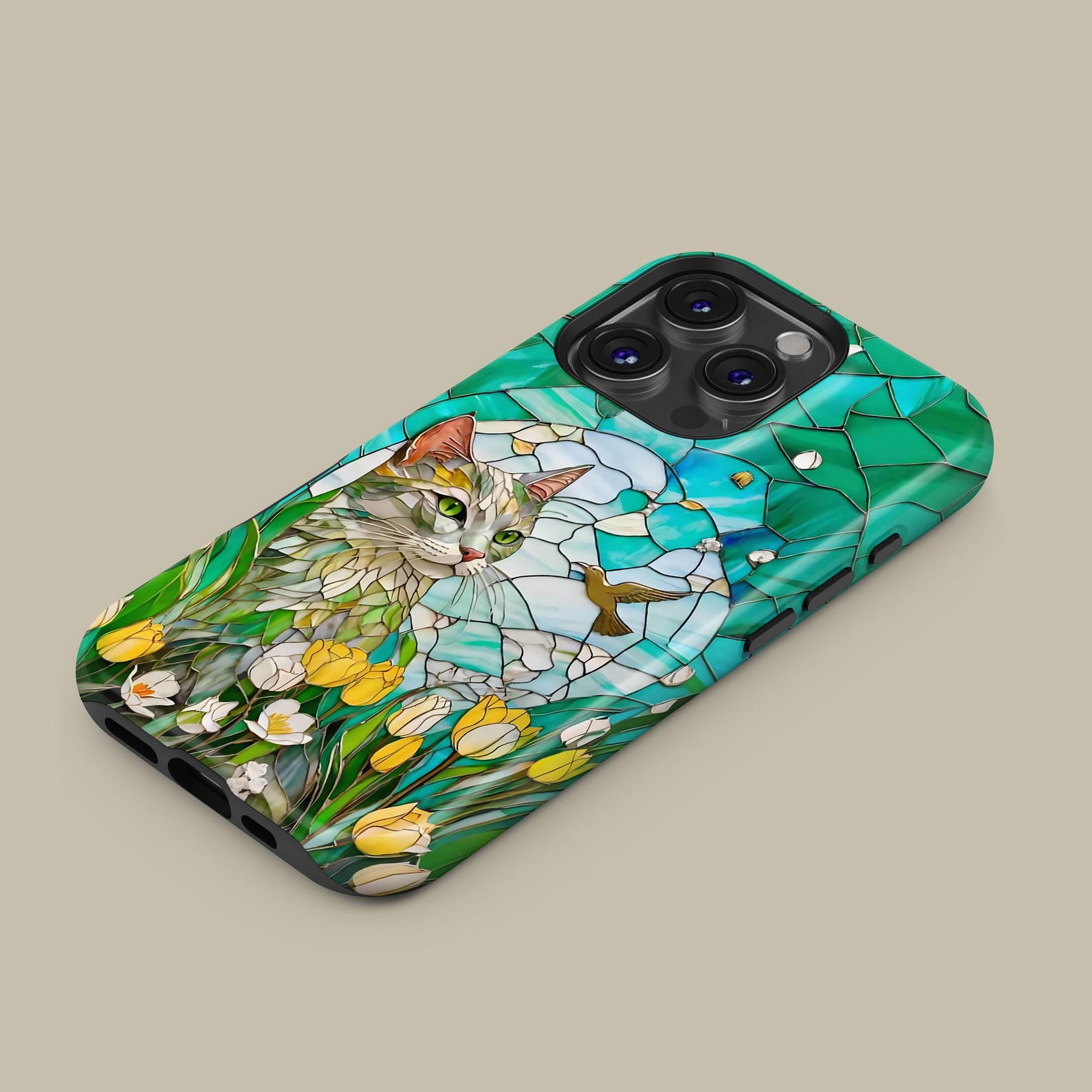 Embrace a playful and artistic vibe with this stunning phone case featuring a whimsical cat design. The vibrant colors of green and yellow combined with delicate floral motifs create a unique and cheerful aesthetic. Crafted from durable materials, this shockproof case ensures your phone stays protected while showcasing your love for feline art. Perfect for those who appreciate modern art and want to add a touch of personality to their device.