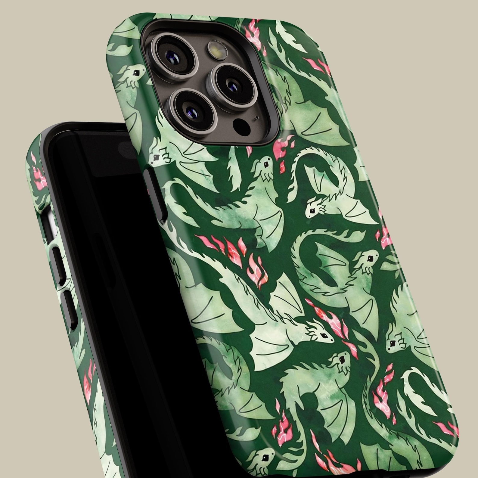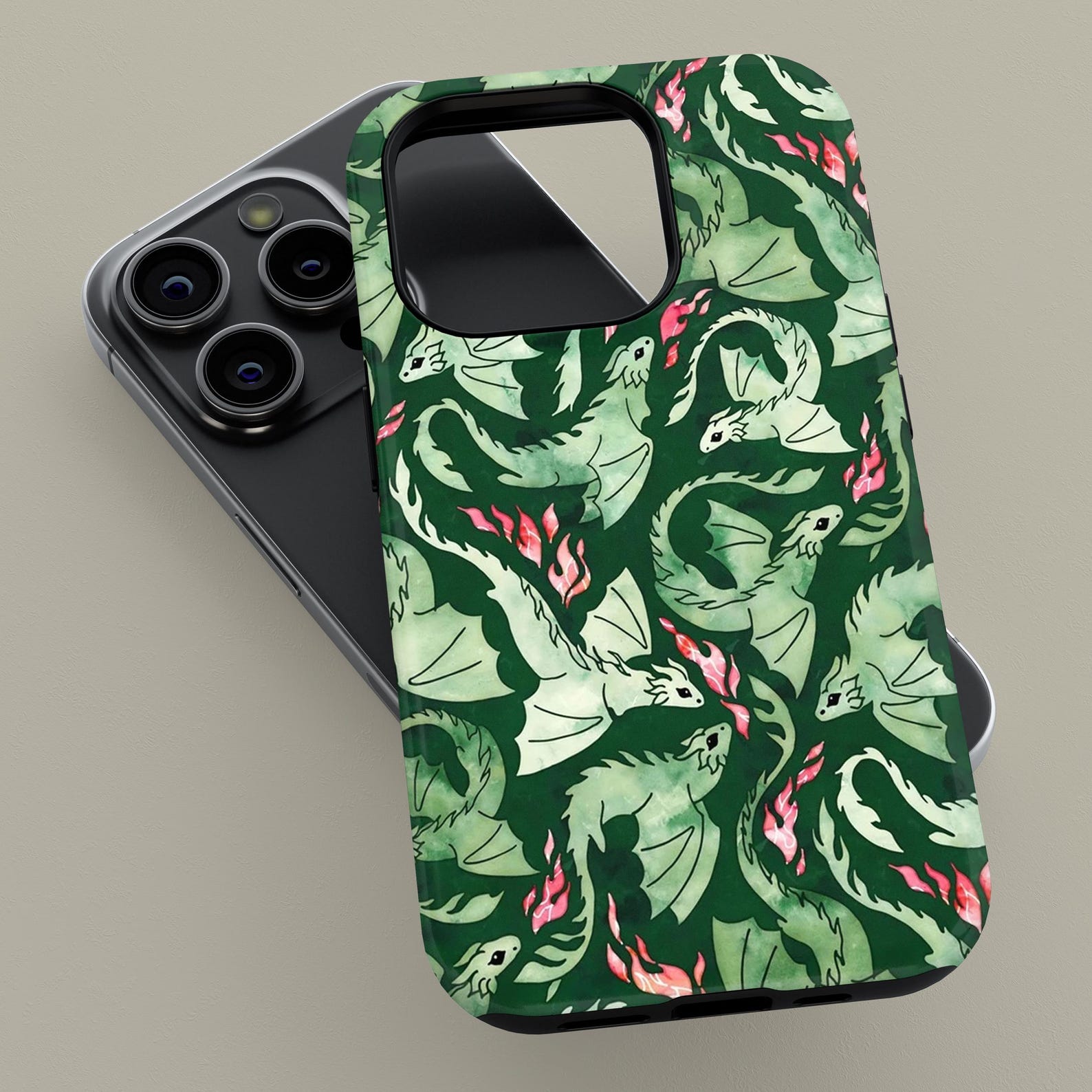 Unleash your adventurous side with this whimsical dragon print design. Featuring an enchanting blend of green hues and playful dragon illustrations, this case perfectly merges fantasy with style. Crafted from durable materials, it offers shockproof protection while maintaining a glossy finish. Ideal for those who love unique and imaginative aesthetics, this phone case ensures your device stands out with modern flair.