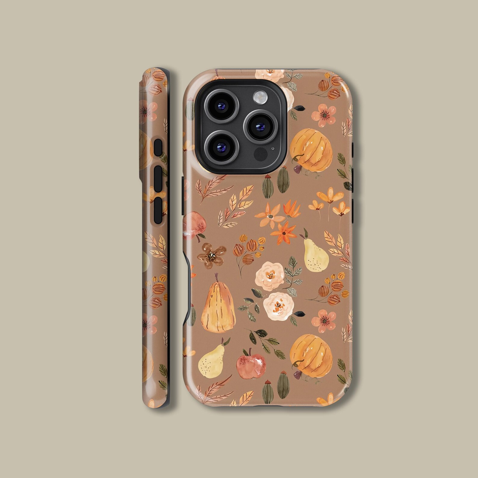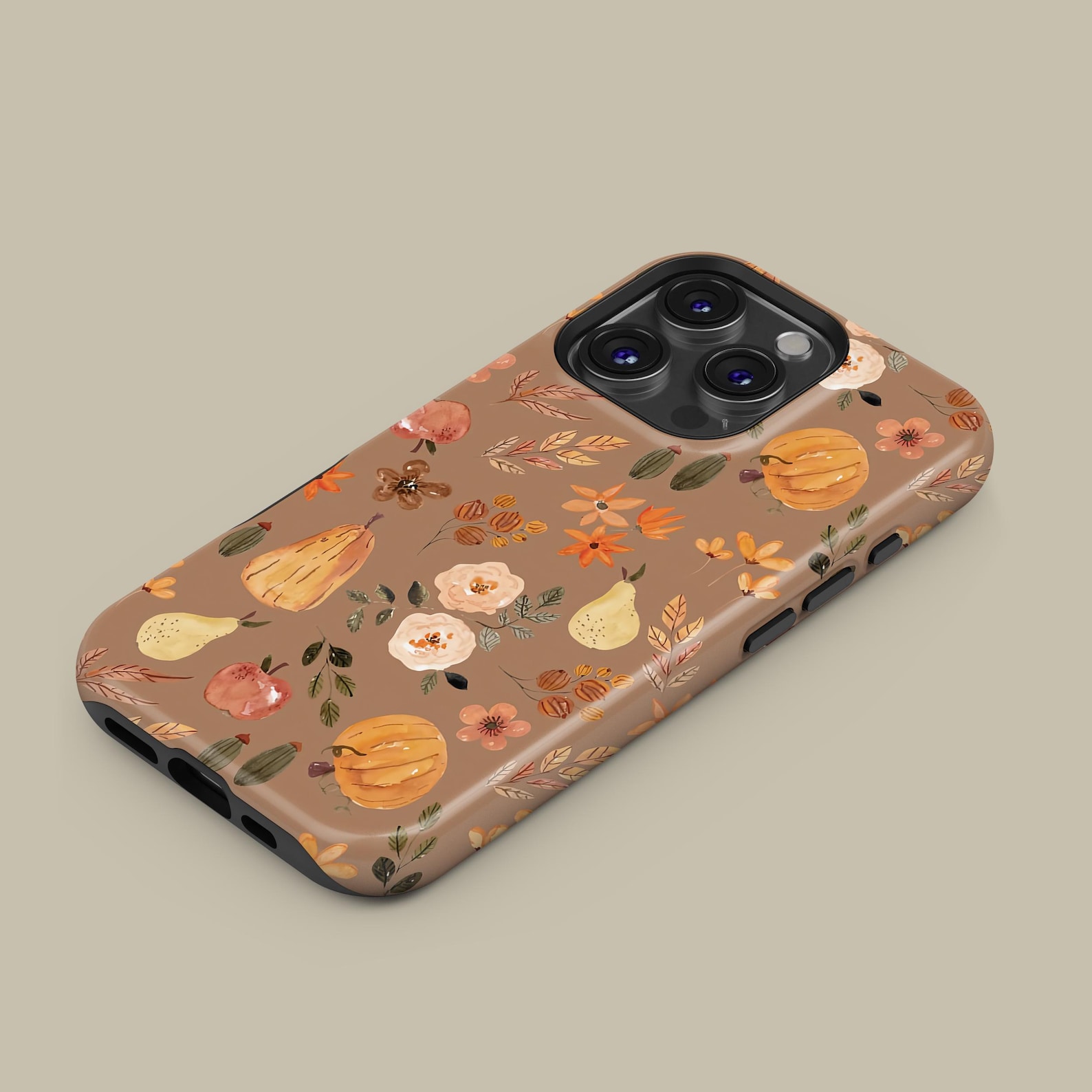 Embrace the charm of nature with this delightful phone case featuring a whimsical floral and fruit design. The soft, earthy tones create a cozy and inviting atmosphere, perfect for any season. Made from durable materials, it offers excellent protection while showcasing a stylish matte finish. Ideal for those who appreciate a blend of playful elegance and natural beauty.