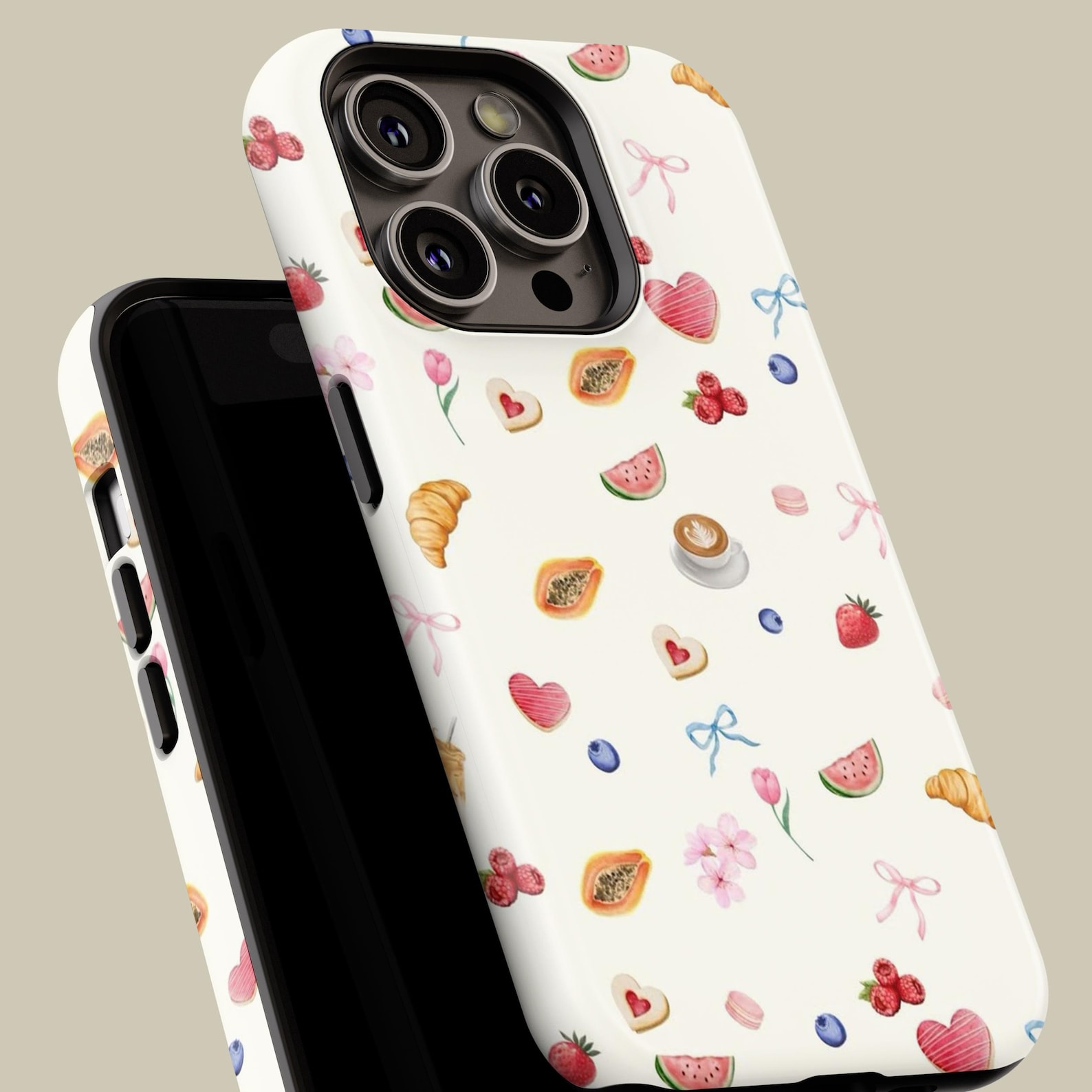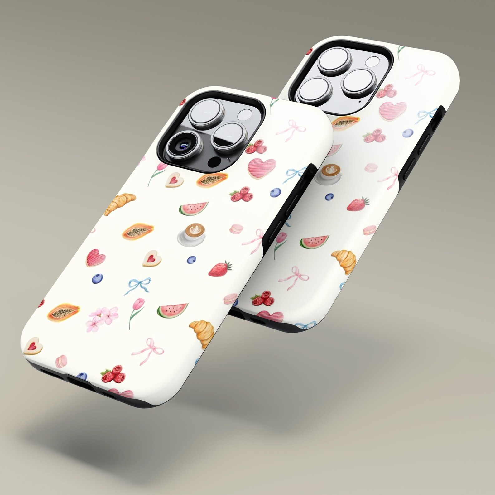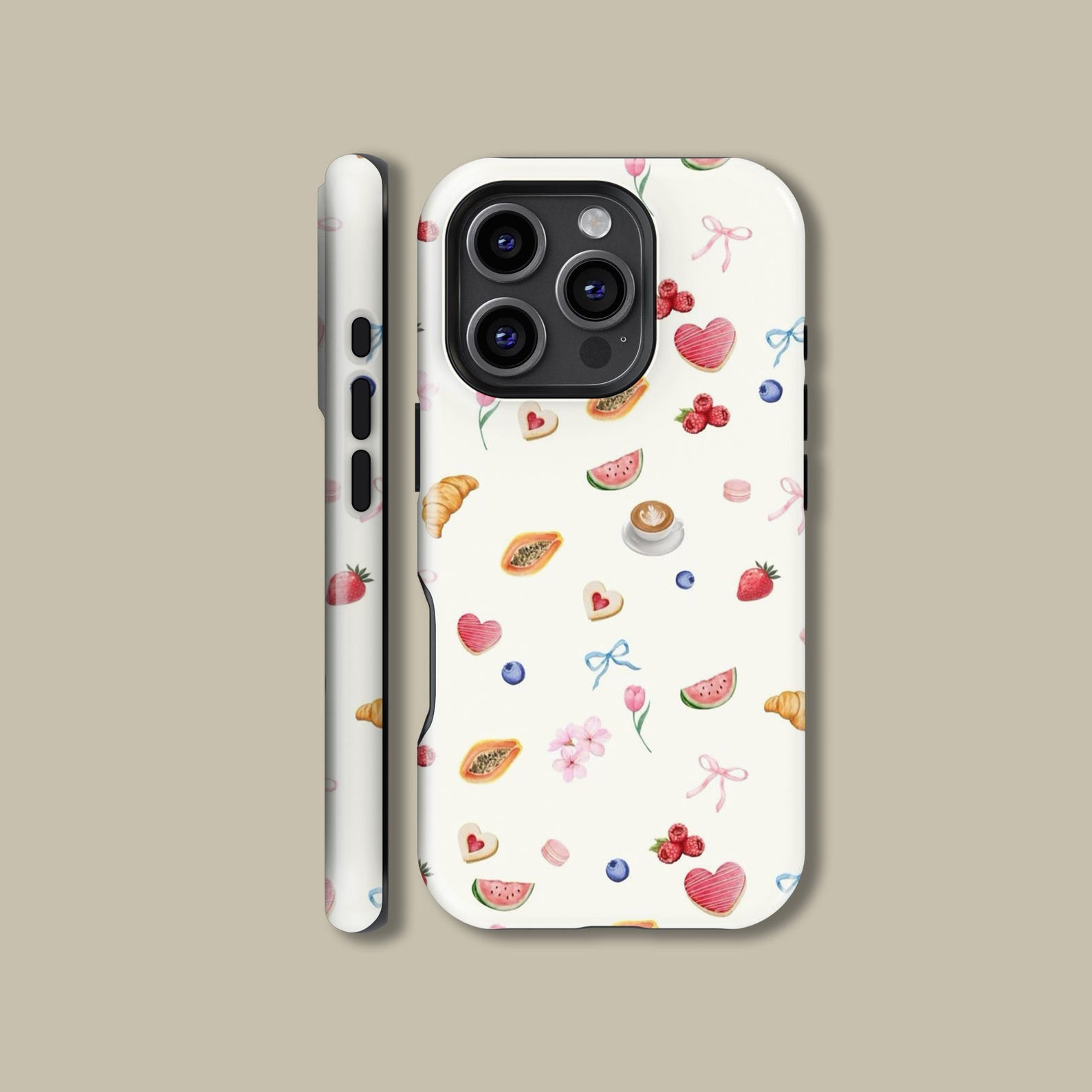 Brighten your day with this charming phone case adorned with playful illustrations of fruits, flowers, and hearts. The soft pastel colors combined with delightful details create a cheerful, inviting vibe. Made from durable material, this case offers a glossy finish that not only protects your device but also adds a touch of fun. Perfect for those who appreciate a mix of elegance and whimsy in their accessories, this stylish case is a must-have for any modern lifestyle.