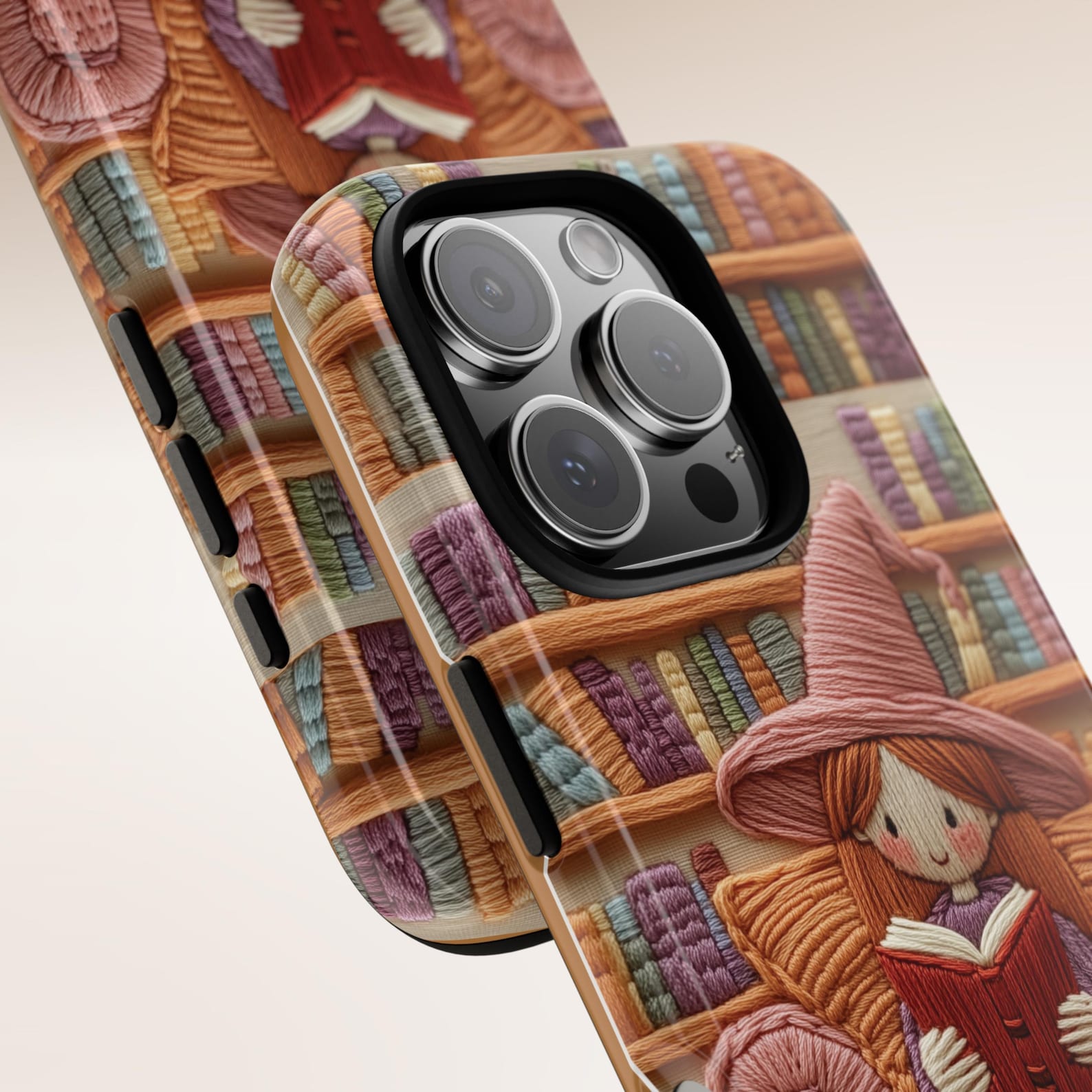 Embrace a cozy reading vibe with this charming phone case featuring a whimsical girl in a pointed hat, engrossed in her book. The warm color palette of soft pinks, blues, and earthy tones creates an inviting atmosphere that’s perfect for book lovers. Made from durable materials, this case not only protects your phone but also adds a playful touch to your style. With its textured finish, it offers both grip and aesthetic appeal, making it a must-have for anyone who appreciates art and charm.